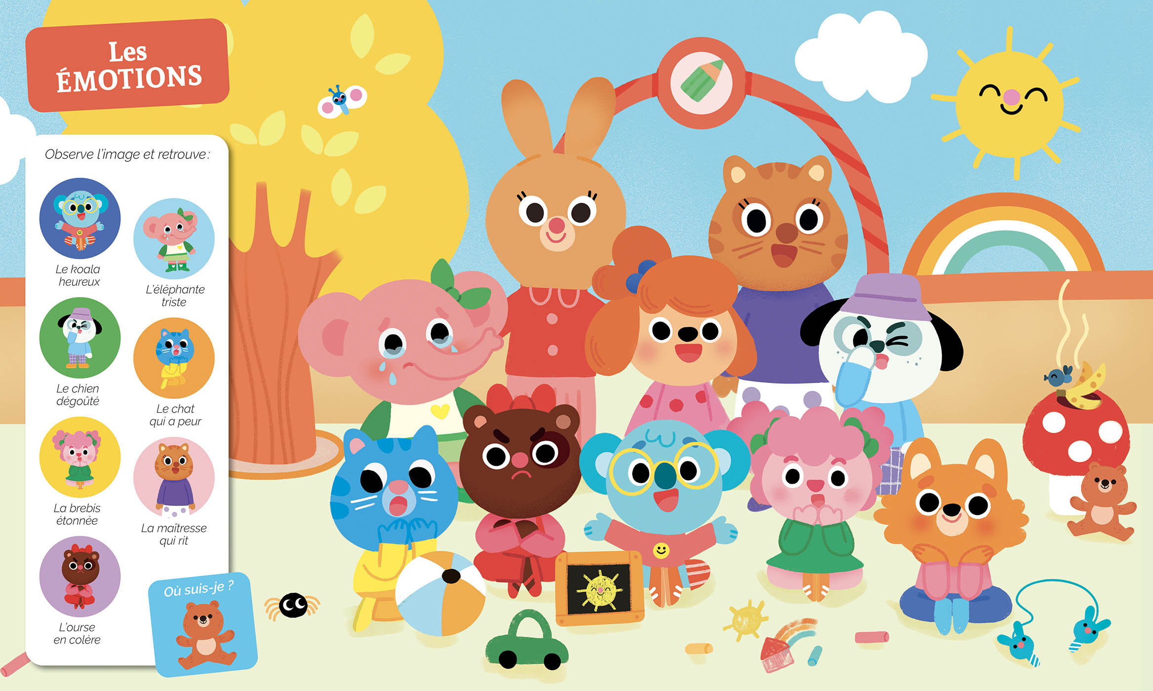 À travers 9 planches de scènes du quotidien foisonnantes de détails, les petits partent à l’exploration de leurs émotions. Ils observent attentivement et retrouvent