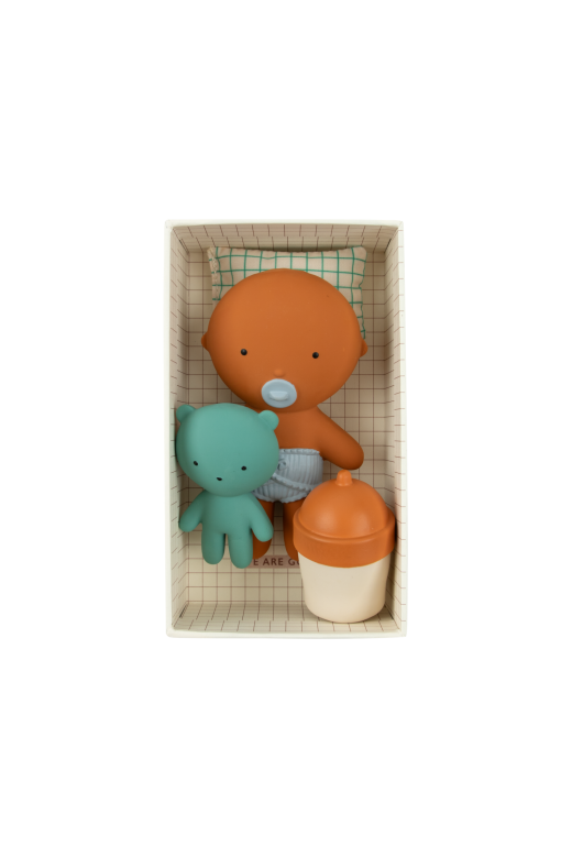 Gommu pocket est une adorable mini poupée conçue en cachous naturel et peinte à la main avec des pigments non toxiques. Taille parfaite pour les petites mains, elle accompagne les enfants dans leurs jeux