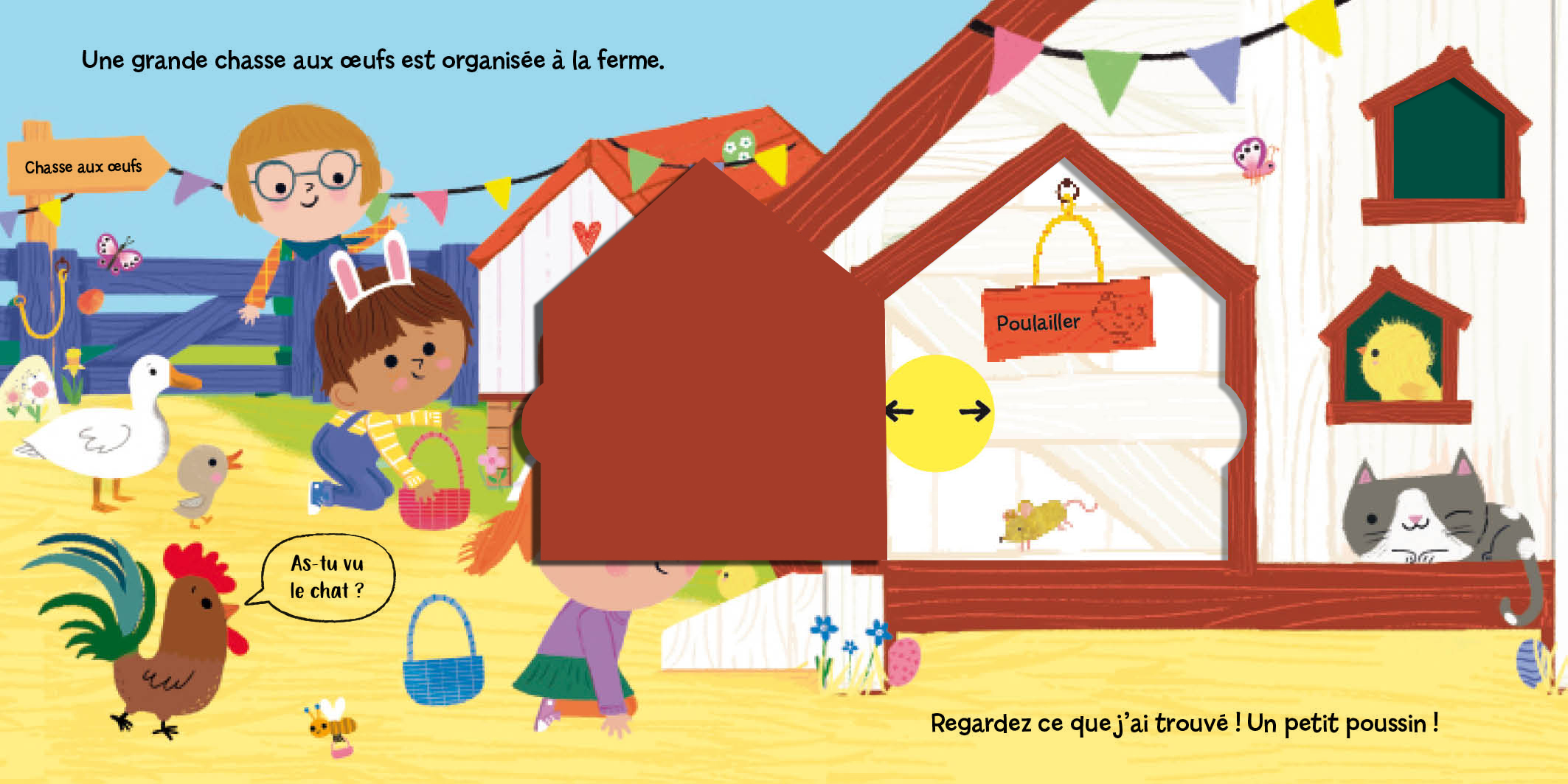 Une chasse aux œufs est organisée à la ferme. Les tout-petits vont s’amuser avec les tirettes pour découvrir de joyeux petits poussins ! Un livre tout carton pour découvrir Pâques et favoriser la dextérité des petites mains.