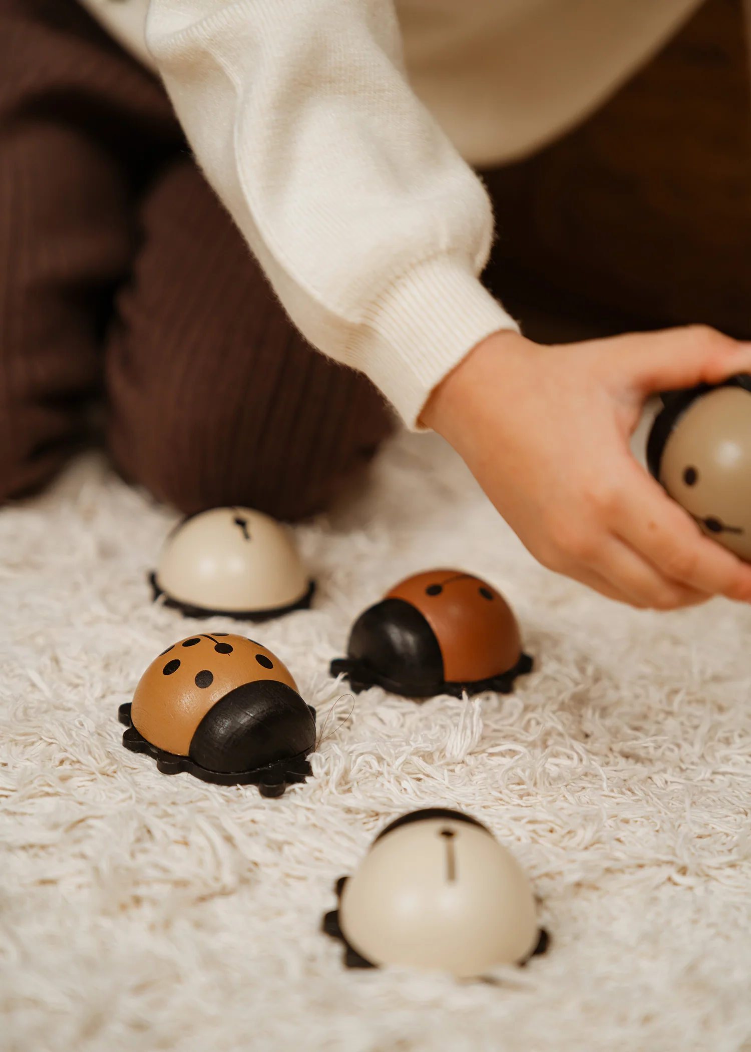 Contient : 10 coccinelles numérotées selon leurs points et un plateau de jeu. Comptez les points et associez-les au numéro correspondant ; si besoin, faites correspondre la couleur de la coccinelle à celle du numéro.