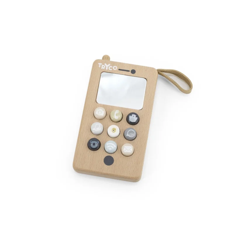 Ce téléphone est en bois ressemble à un vrai téléphone portable ! Les boutons ont des figures et des couleurs amusantes