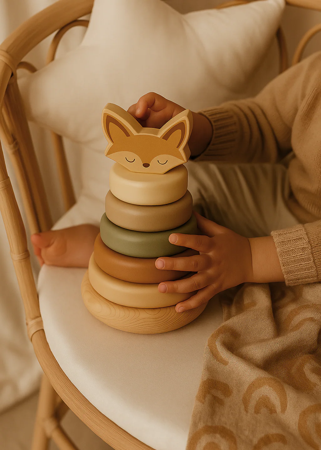 Découvrez le renard en bois ! Ce nouveau jouet à empiler, avec ses anneaux colorés en forme de renard, est fabriqué en bois 100 % naturel et peint avec une peinture non toxique. Un jouet classique qui développe la motricité et la concentration des jeunes enfants.